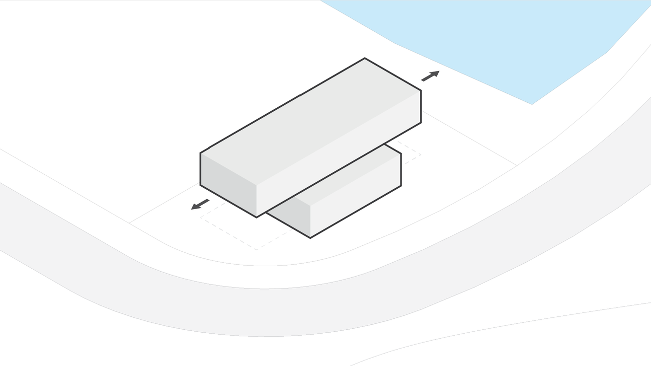 Paralleled to this, the service areas run linearly, connecting the garage to the lakeside garden without passing through the social areas.